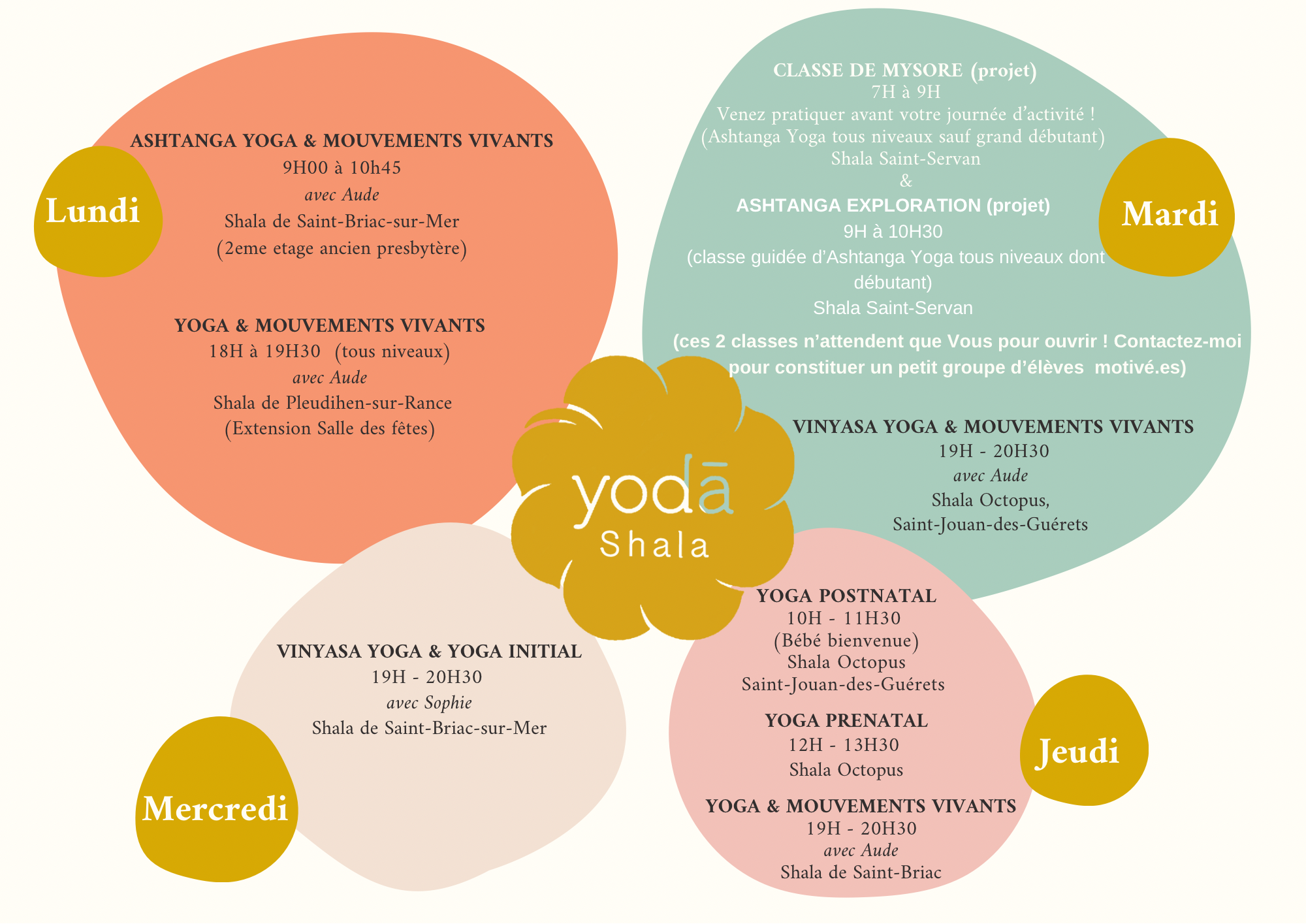 • La saison YODA SHALA s’échelonne du 4 septembre 2025 au 3 juillet 2026 (hors ateliers & stages).
